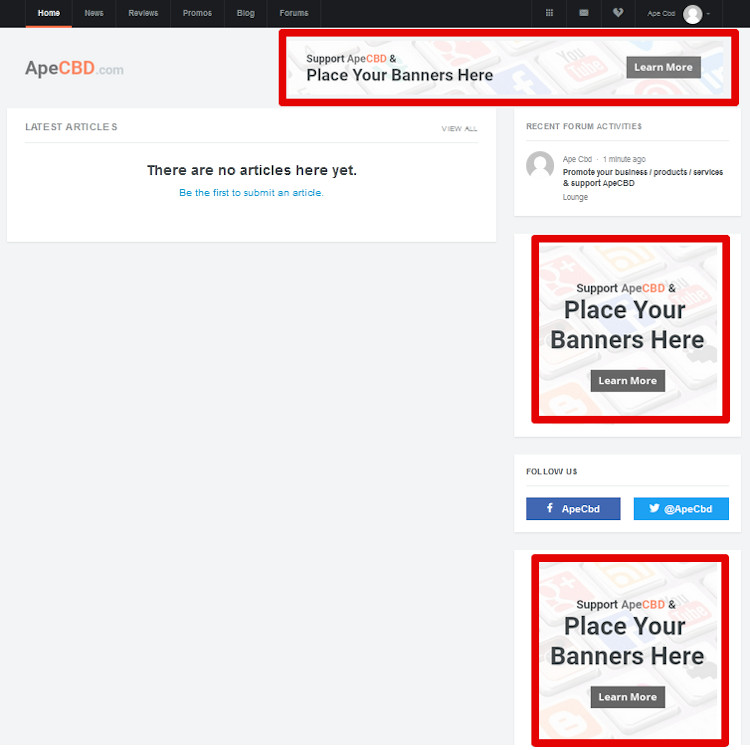 You can promote your business through posting banner ads on ApeCBD. There are three positions where banners can be placed: